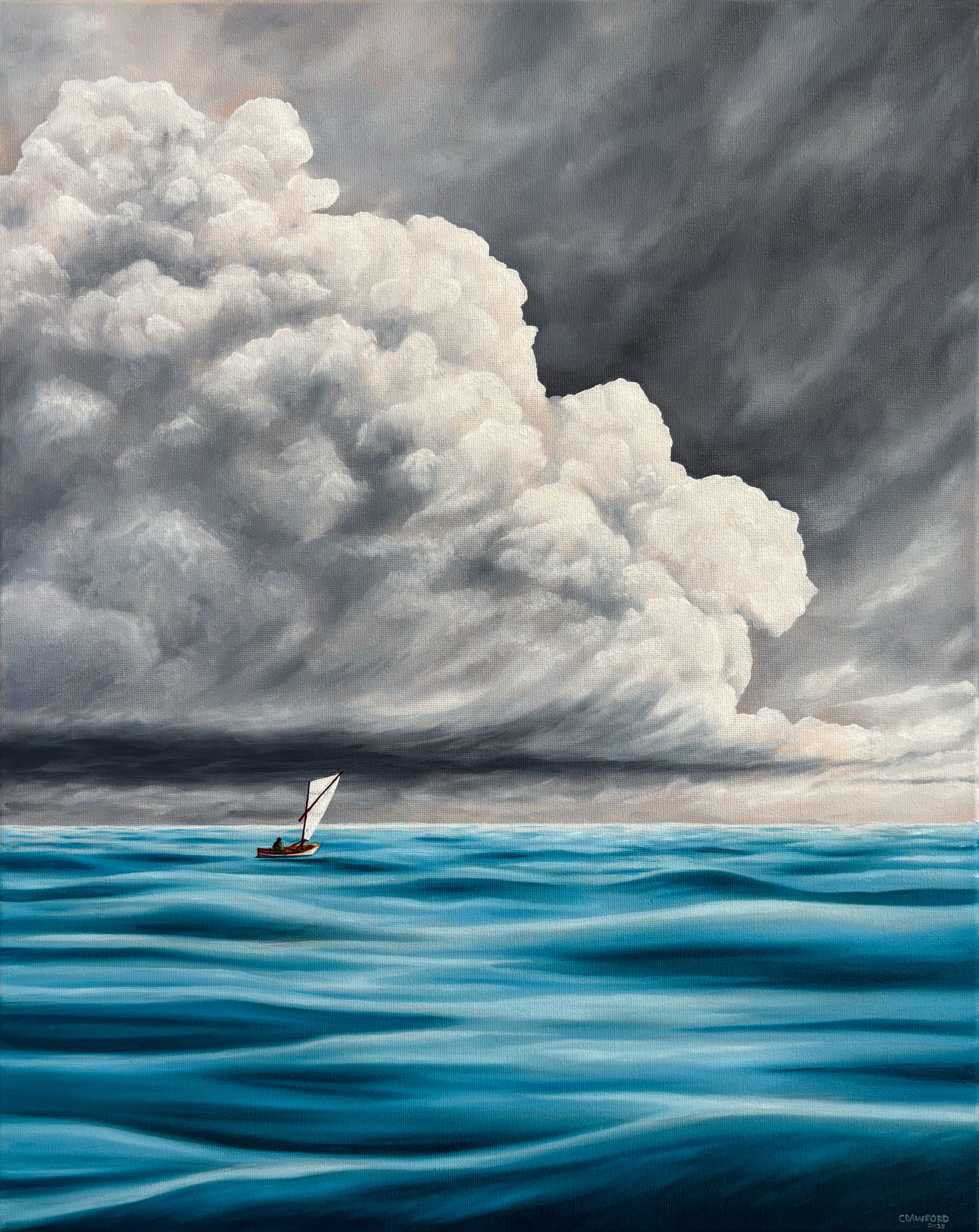 The presence of that vessel transforms the scene into a question: is it moving toward the gathering clouds, or seeking to outrun them? Is the storm an ending, or a beginning?